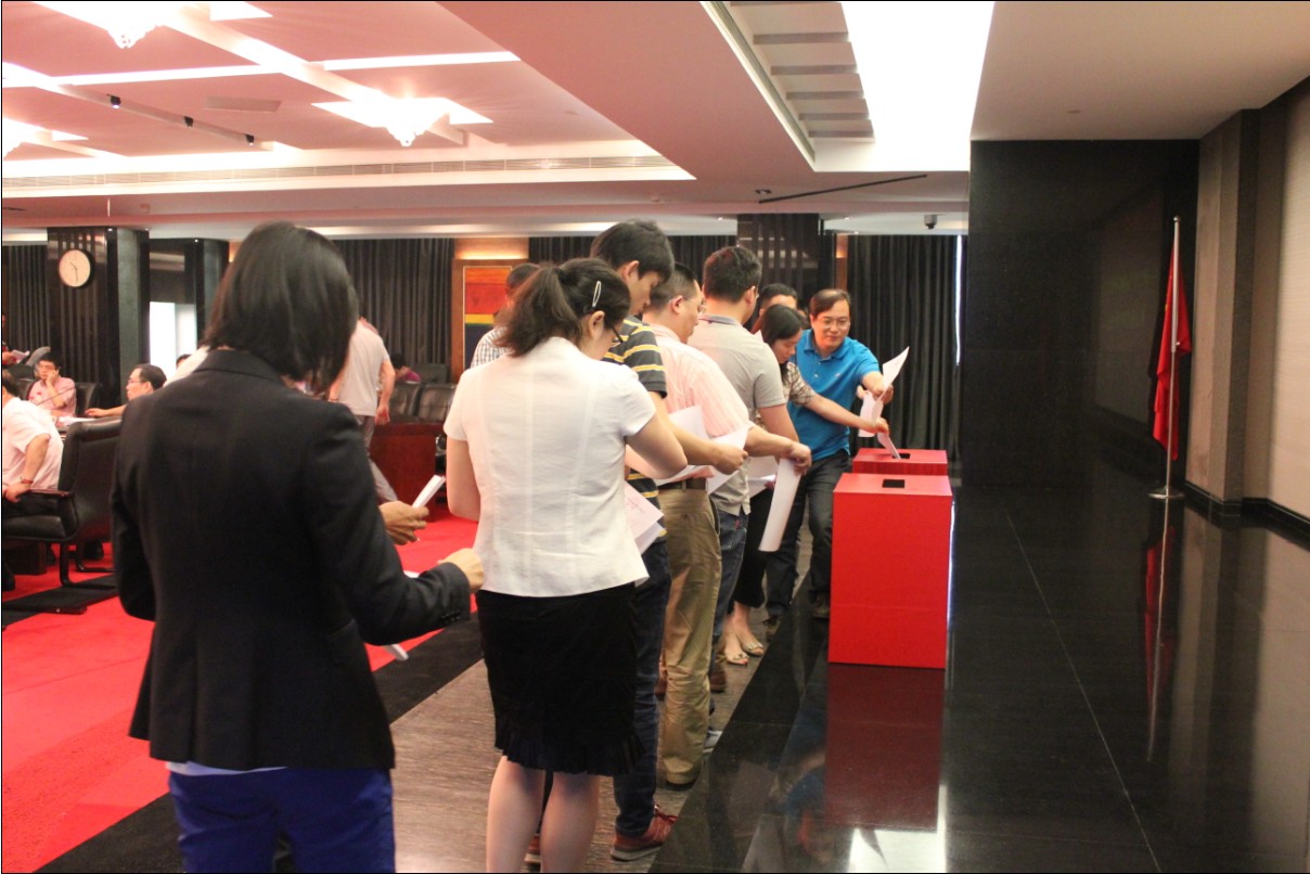 ????? 89名 黨員代表認真聽取并審議通過了黨委、紀委工作報告之后,按照換屆選舉的有關議程,進行了無記名差額選舉,產生公司新一屆黨委、紀委成員,并在隨后的新一屆 黨委、紀委第一次全體委員會上選舉產生了黨委書記、黨委副書記,紀委書記、紀委副書記。最后,大會在雄壯的國際歌中勝利結束。