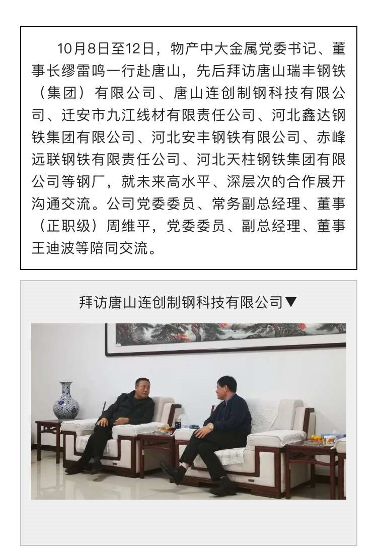 物產中大金屬黨委書記、董事長繆雷鳴一行赴唐山拜訪交流