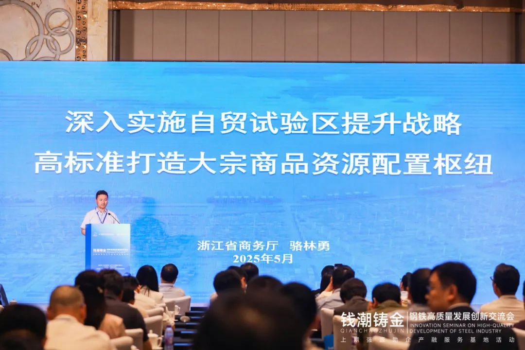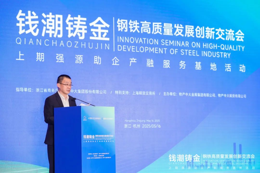 2025年5月16日,由浙江省商務廳、物產中大集團指導,上海期貨交易所特別支持,物產中大金屬與物產中大期貨主辦的“錢潮鑄金——上期強源助企產融服務基地活動之鋼鐵高質量發展創新交流會”在杭州成功舉行。會議匯聚上海期貨交易所、浙江省商務廳、五十余家產業鏈龍頭企業以及研究機構代表,圍繞鋼鐵行業產融結合創新路徑展開深度研討。