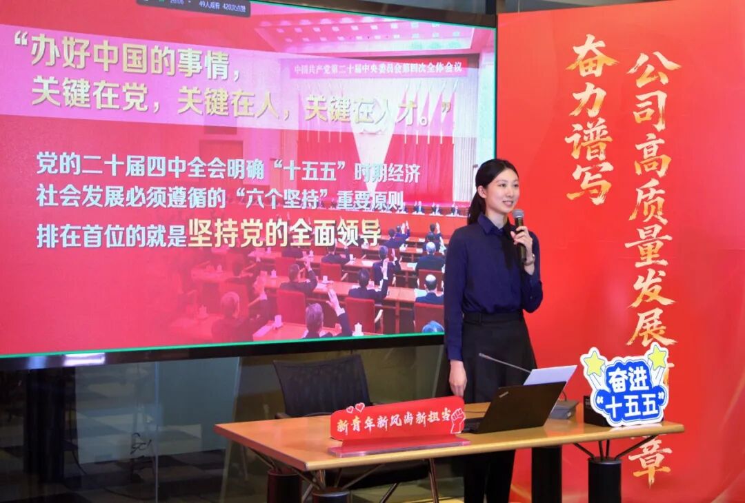 理論闡釋“見深度”,在精學(xué)細(xì)悟中把握核心要義。宣講員們緊扣全會提出的新思想、新論斷、新部署,精心選題、深入闡釋,通過原原本本學(xué)原文,深入解讀戰(zhàn)略部署的深刻內(nèi)涵與實踐要求,以扎實的理論功底確保宣講有深度。實踐轉(zhuǎn)化“求效度”,在知行合一中破解發(fā)展難題。結(jié)合公司國際業(yè)務(wù)三年登高行動,解讀“積極擴(kuò)大自主開放”的戰(zhàn)略部署;聚焦“持之以恒推進(jìn)全面從嚴(yán)治黨”戰(zhàn)略部署,探討如何以高質(zhì)量黨建引領(lǐng)和推動高質(zhì)量發(fā)展,等等。他們堅持用“小切口”講透“大道理”,在聯(lián)系實際中找準(zhǔn)行動方向,切實把學(xué)習(xí)成果轉(zhuǎn)化為推動公司高質(zhì)量發(fā)展的實干成效。形式載體“增鮮度”,在守正創(chuàng)新中彰顯青春風(fēng)采。在公司“紅色直播間”、在業(yè)務(wù)一線、在項目現(xiàn)場,青年宣講員們運用短視頻、PPT等“接力”宣講。2個月共開展30余場宣講,通過“短、實、新、活”的宣講模式,講理論、談體會、亮擔(dān)當(dāng),打通理論傳播“最后一公里”,有效推動黨建工作與業(yè)務(wù)實踐同向發(fā)力、深度融合。